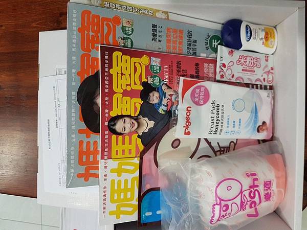 滿意寶寶M*1、孕哺兒系列試用包*5、貝恩寶寶護膚膏*1、溢乳墊*1、舒摩兒日用洗潔液*1、舒摩兒加強型洗潔液*1,理膚寶水適用包*2是藥師另外給的